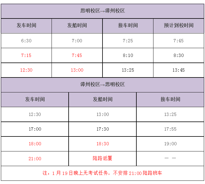 3.除统一安排车船的时段外,其余时间主考、监考请自行购票通行。自行购买的车船票,由各教学单位教学秘书收齐报销。